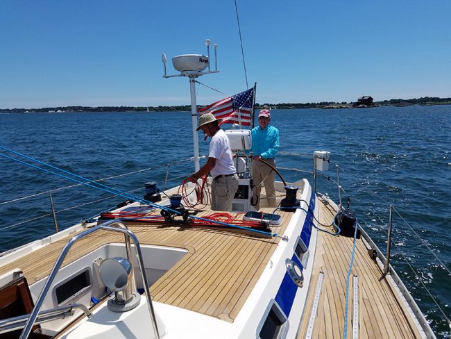 AURORA Reckman furling system repairs Custom joinery Plumbing repairs WHITE KNIGHT Refurbish teak decks