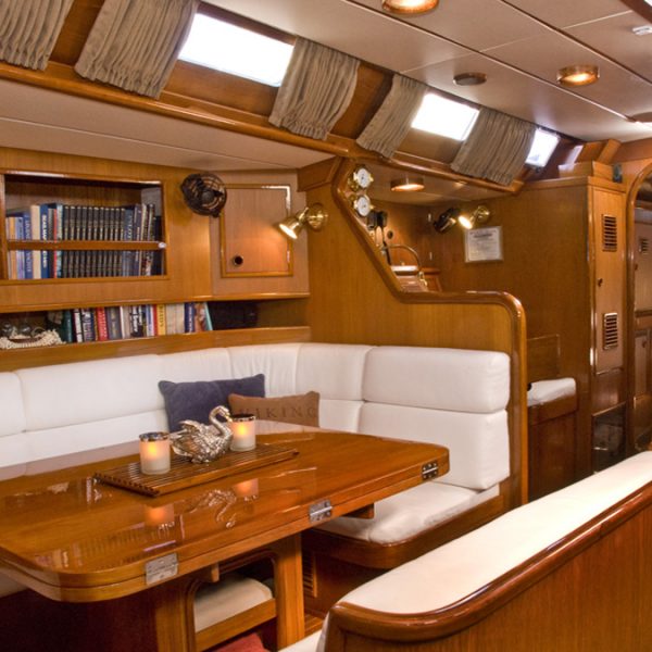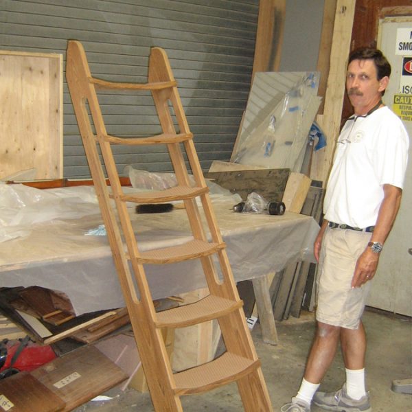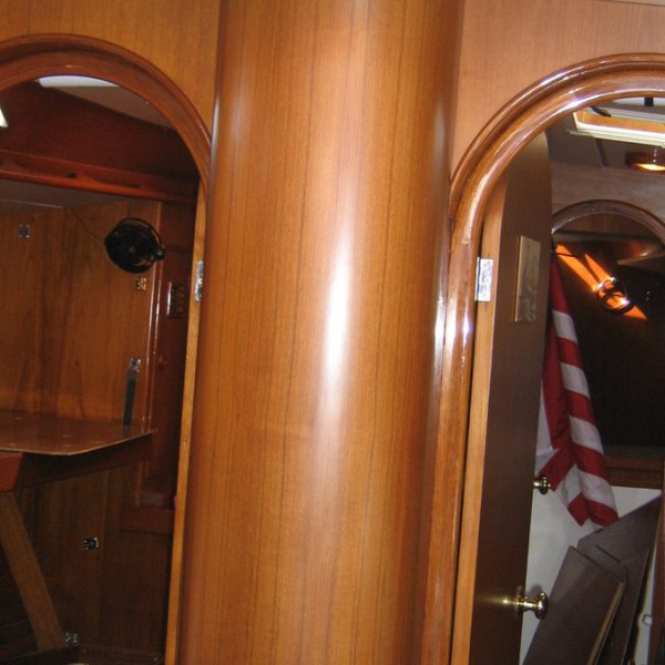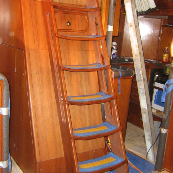 Our Carpentry Department replaced the companionway steps, re-veneered the mast cover, repaired or replaced hatches, re-configured the galley, entertainment area, navigation station, and few hundred additional labor hours of interior joinery & veneer work requested by her owner (too many to list)!