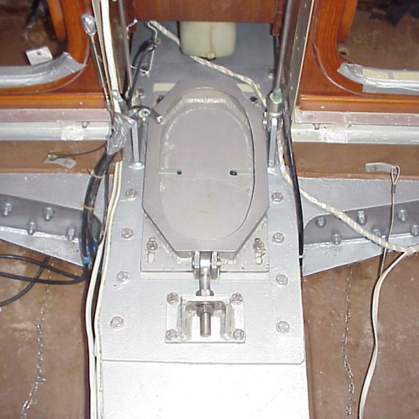 Our Paint & Glass Department performed a complete osmosis blister repair to the hull, re-built the rudder, re-coated the metalwork and other areas in the bilge, and gave the spars, transom, binnacle, and other ancillary components fresh Awlgrip.