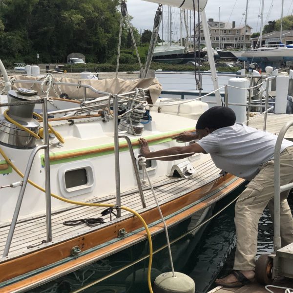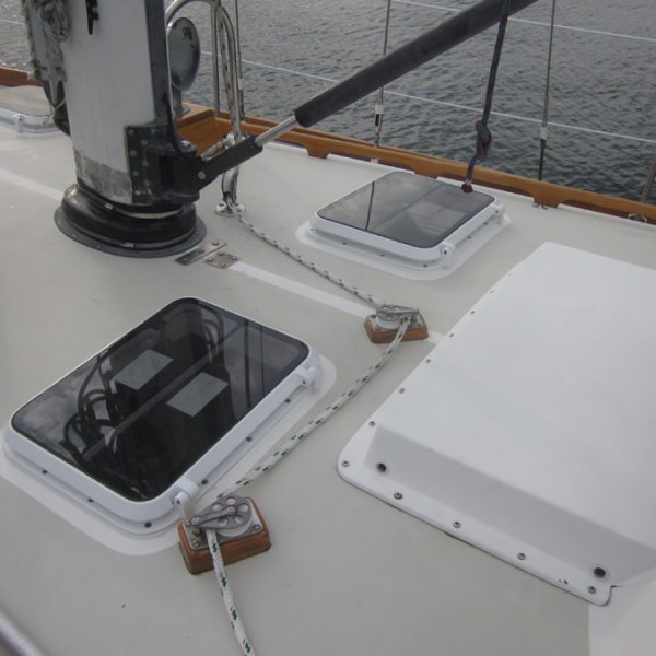 New refrigeration, new engine, new generator, new tankage, new plumbing, centerboard services, new hatches, new interior varnish, rock-steady exterior varnish, & Awlgrip the rig.